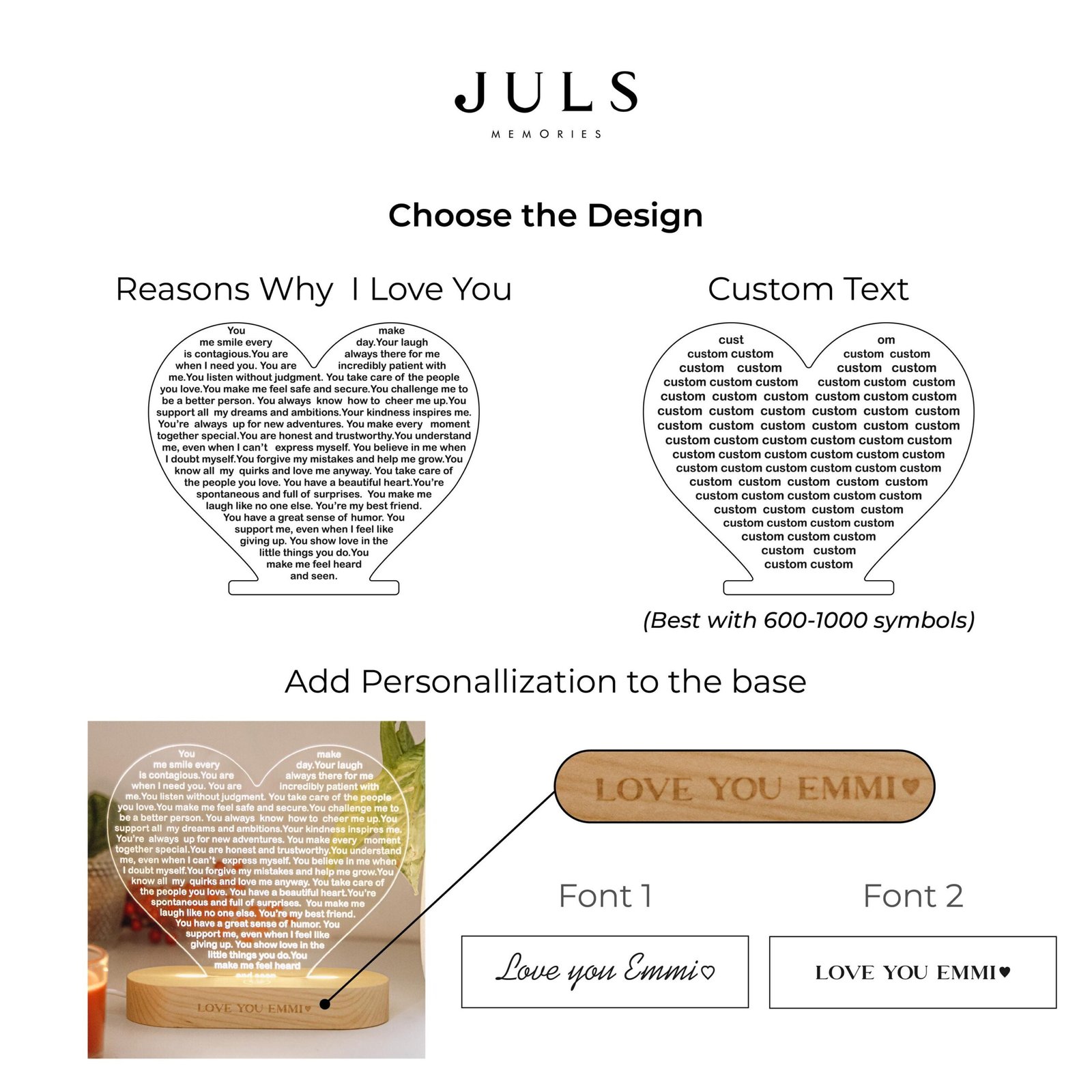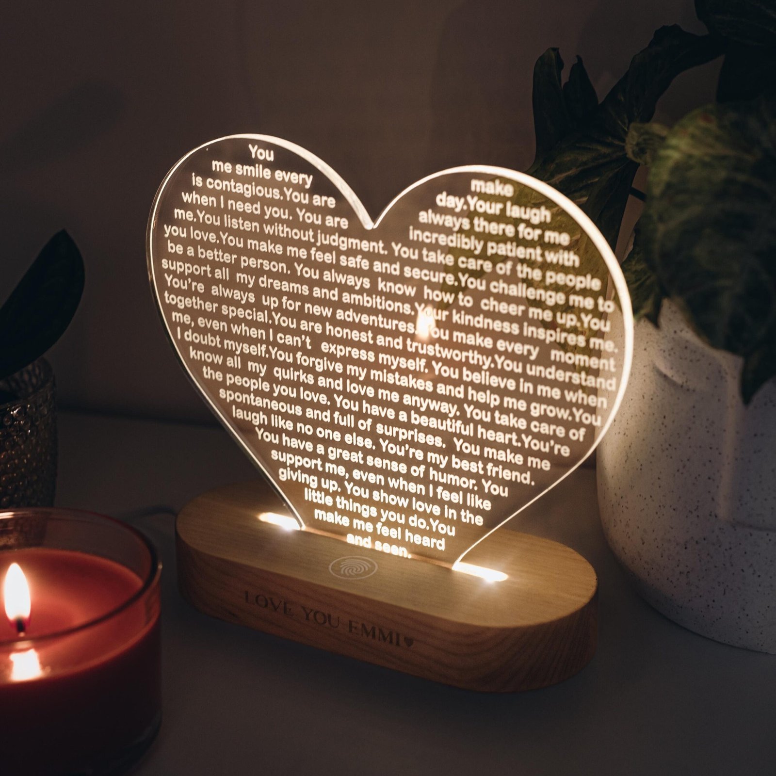 Light up her world with a custom heart night light—a perfect Christmas gift, a thoughtful 30th birthday surprise, a romantic gesture, or a touching anniversary present. Let love shine bright in the form of this personalized night light that symbolizes your deepest affections and conveys your heartfelt emotions in a warm and luminous way. Illuminate her heart and space with a gift that radiates love and togetherness.